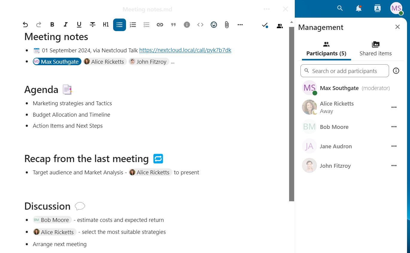 Second, you can select a file from your Nextcloud Files or a file manager by choosing the little paperclip and selecting where you’d like to pick the file from.